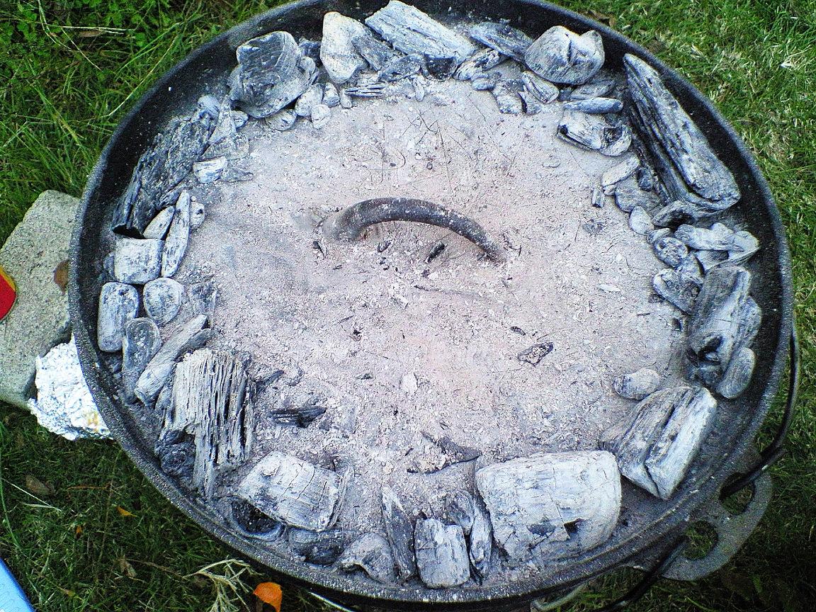 しまい込んでいたダッチオーブンを出してきて炭火でパン作りしようと言う訳。。