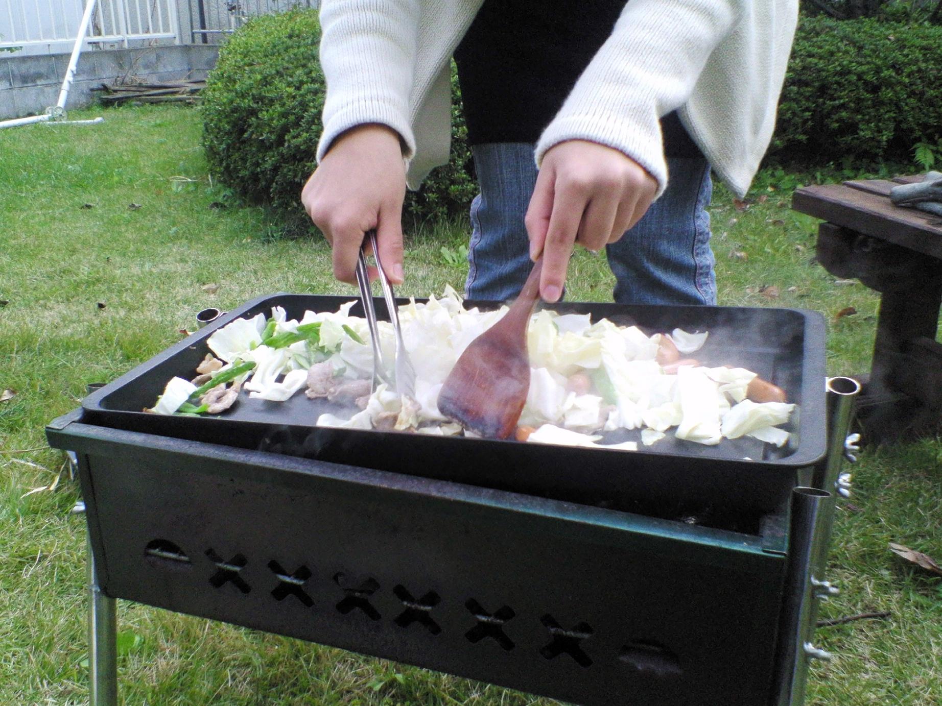 庭でバーベキュー