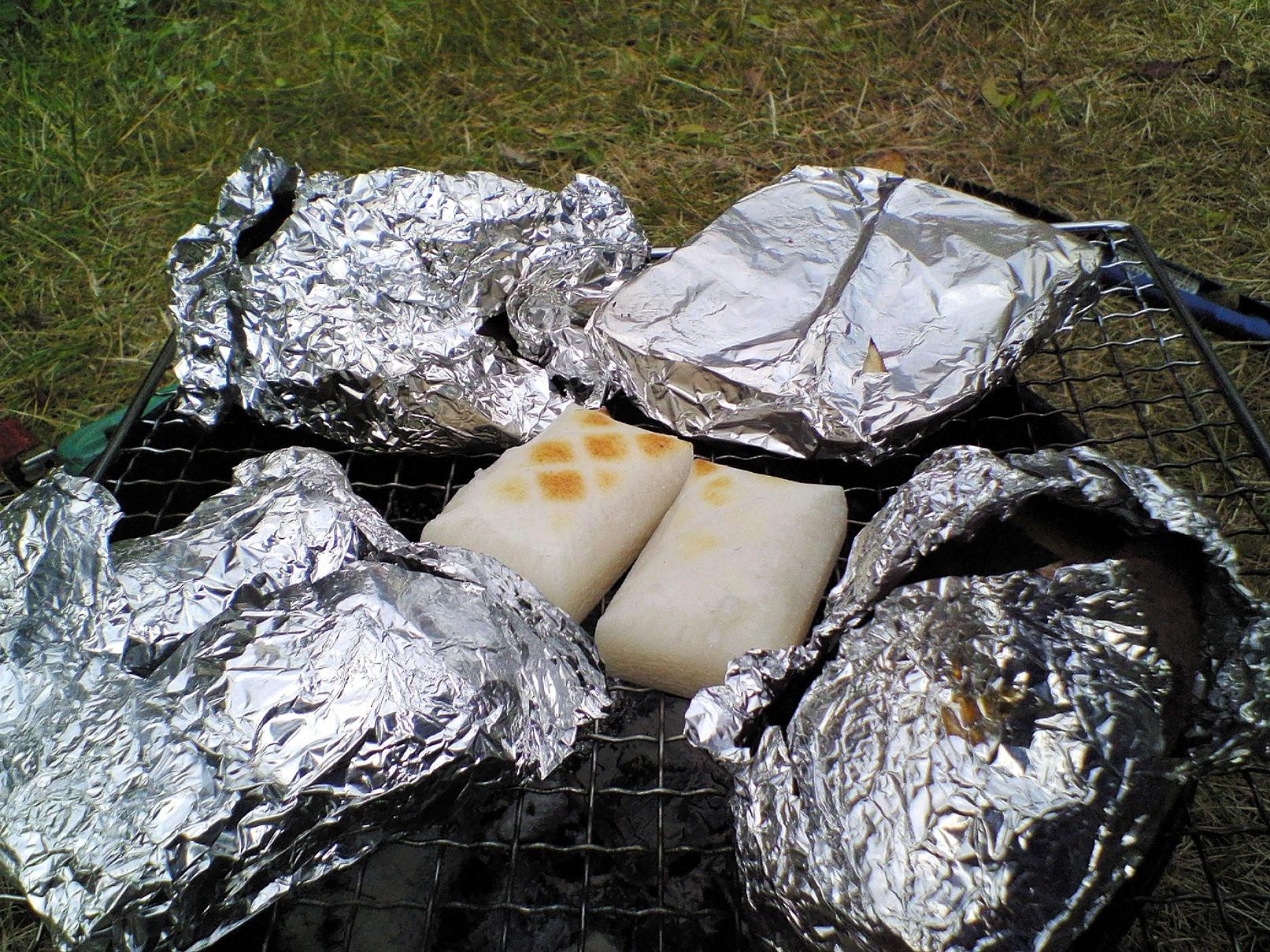 もちを焼くついでにサツマイモも。。