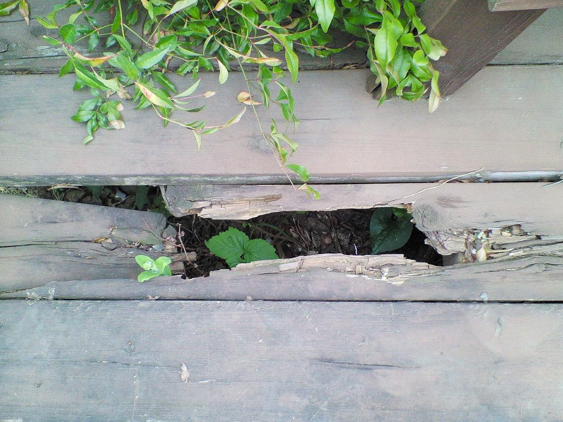 10数年前に作ったサンデッキもいたる所が朽ち果てて踏み破りかねない状況。。