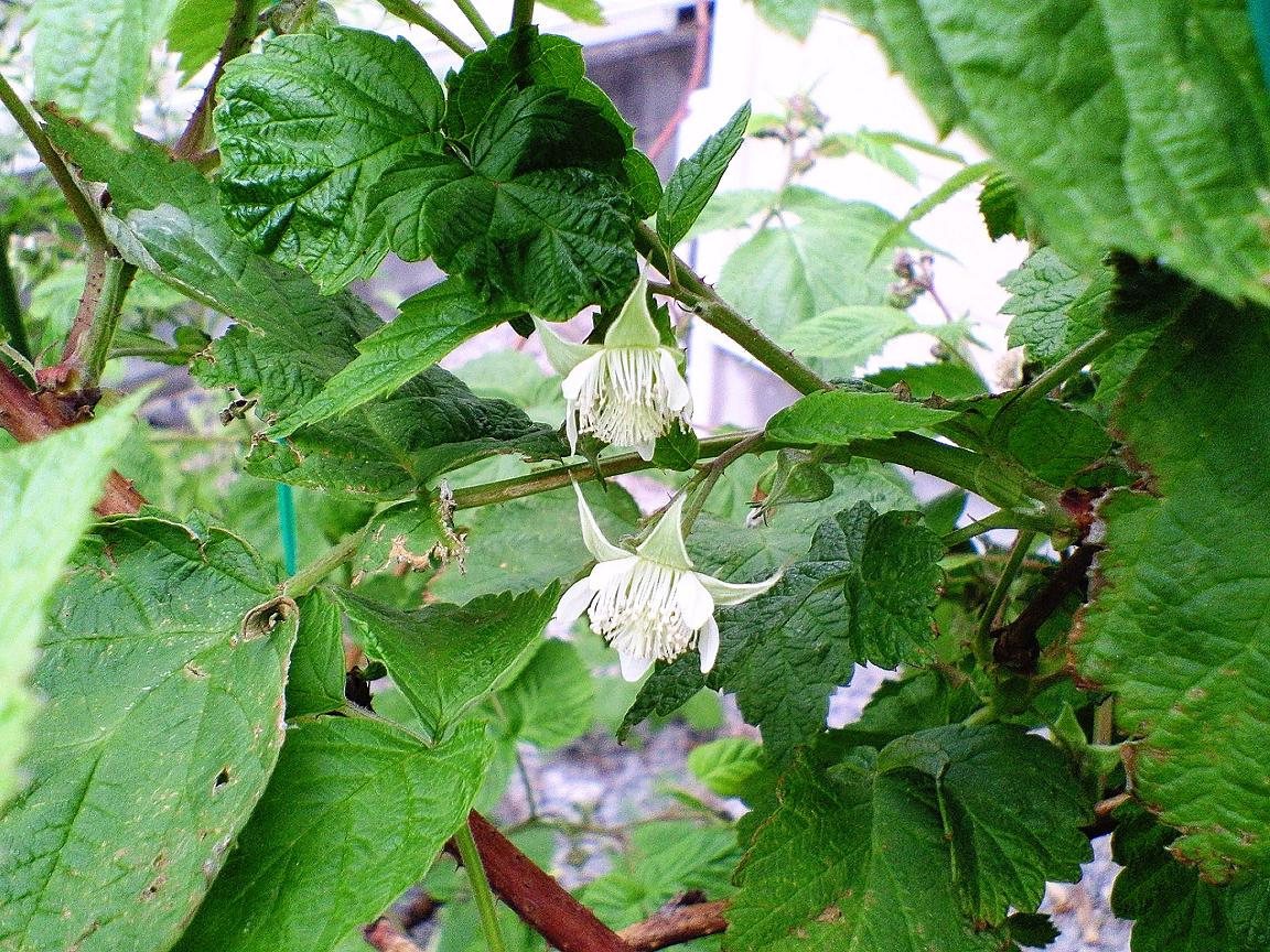 木苺の花とゴーヤのツル。。