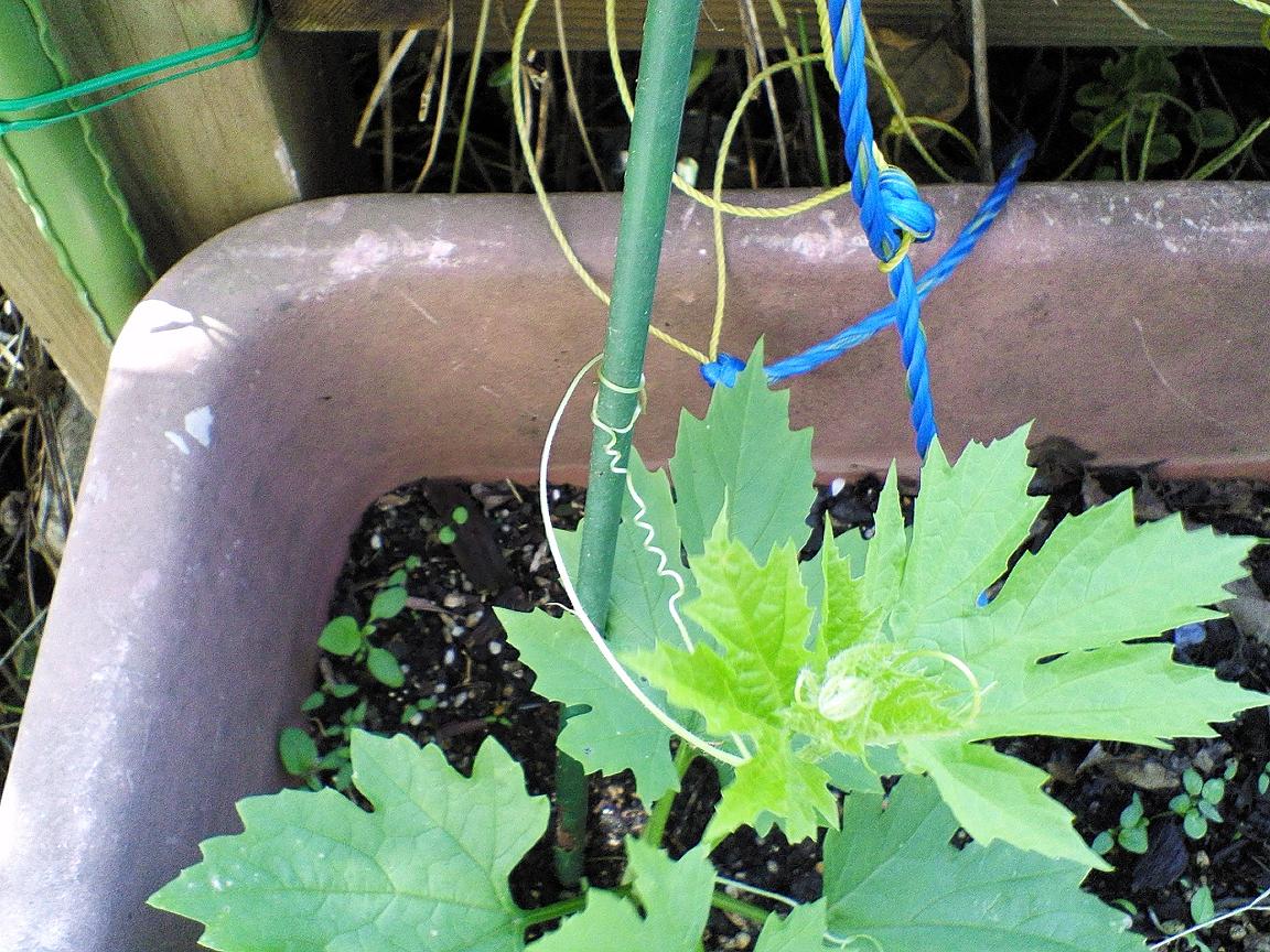 それと先日植えたゴーヤの苗。。4本中根付いたのは2本。。