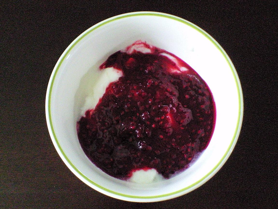 朝は、木苺のジャム入りヨーグルト。。