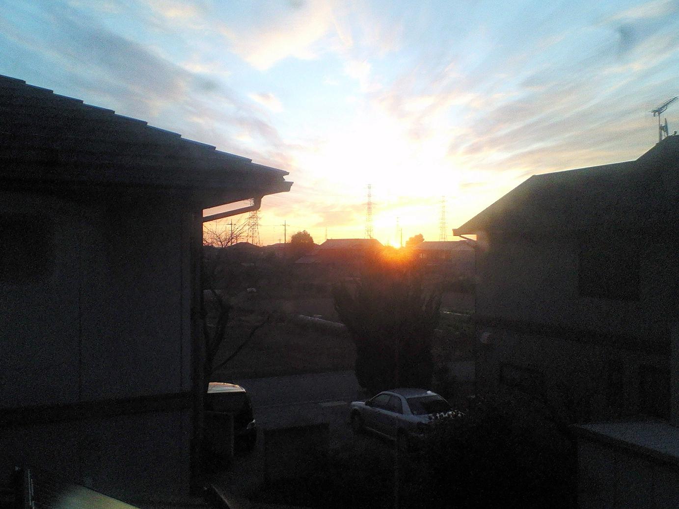 我が家の2階の窓から初日の出を見ました。。