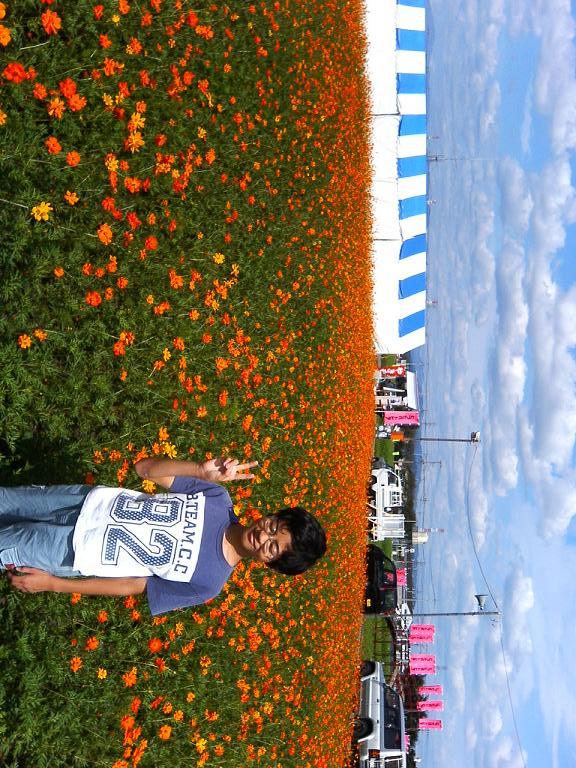 その演奏会を待つ間、息子を伴って新田のお花畑を見に行った。。