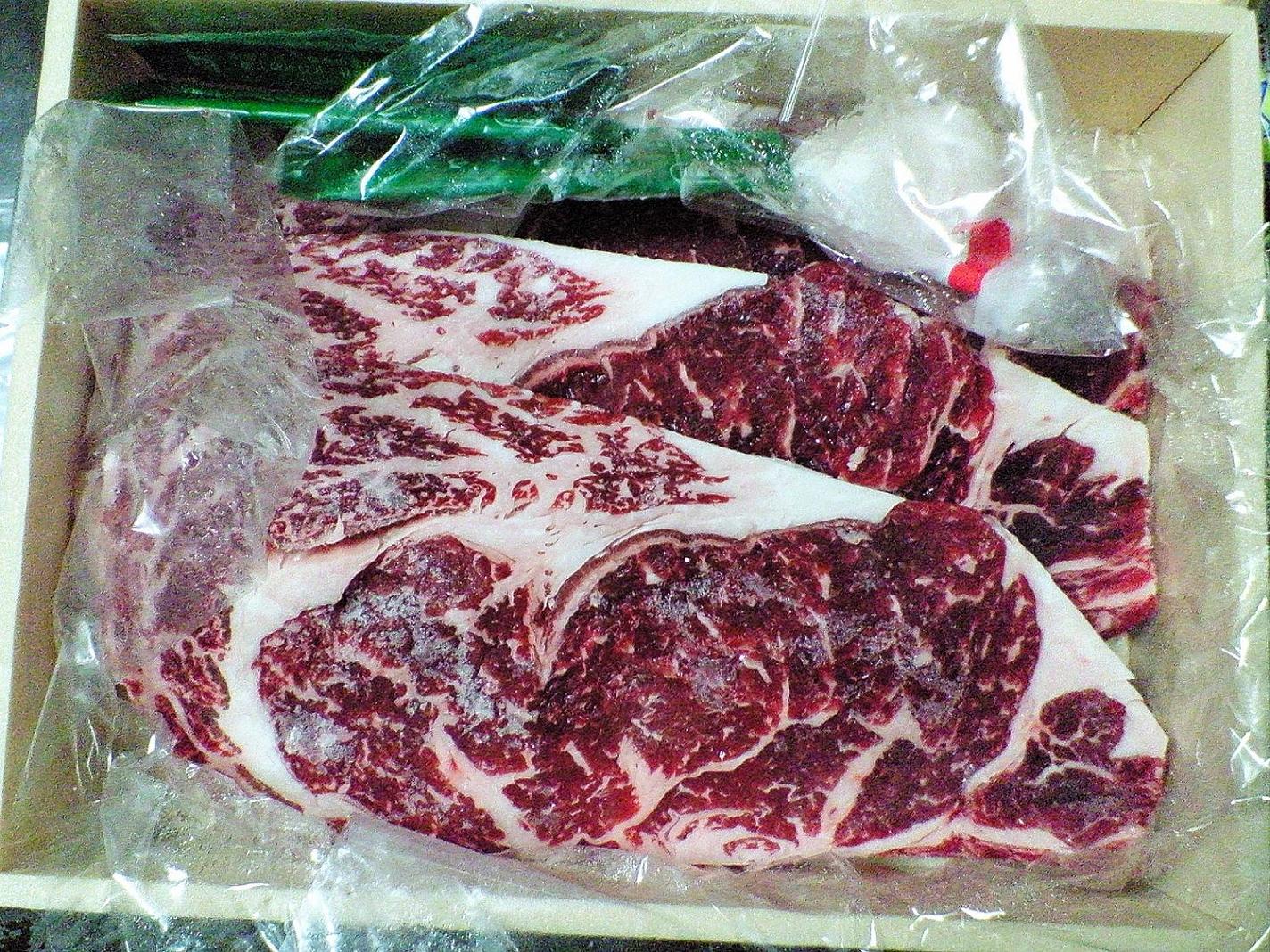 家族4人にステーキ肉3枚、1枚足りないけど工夫して家族で仲良く胃の中へ。。