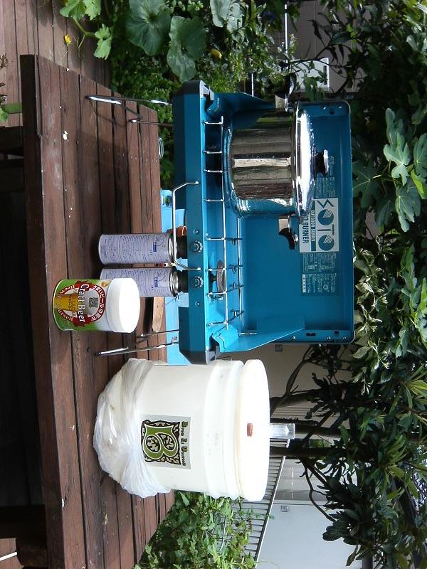 電気代の関係で屋外で簡易ガスボンベを使っての仕込だ。。