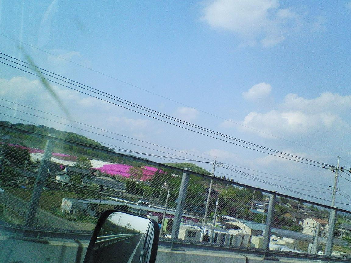 高速道路から見ごろを迎えた太田市北部運動公園の芝桜が見渡せた。。
