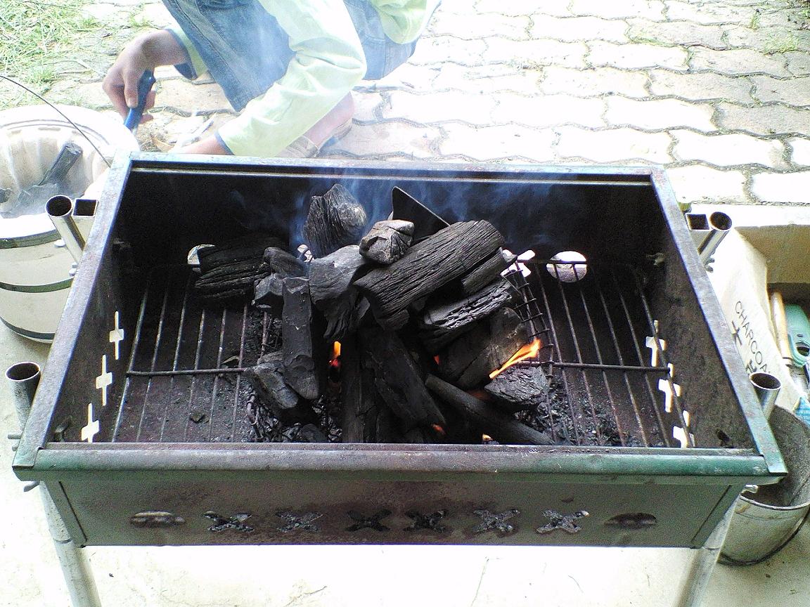炭がしけっているのか中々火が着かず手こずってしまった。。