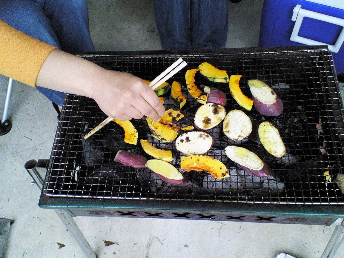 肌寒い中、駐車場でバーベキュー。。
