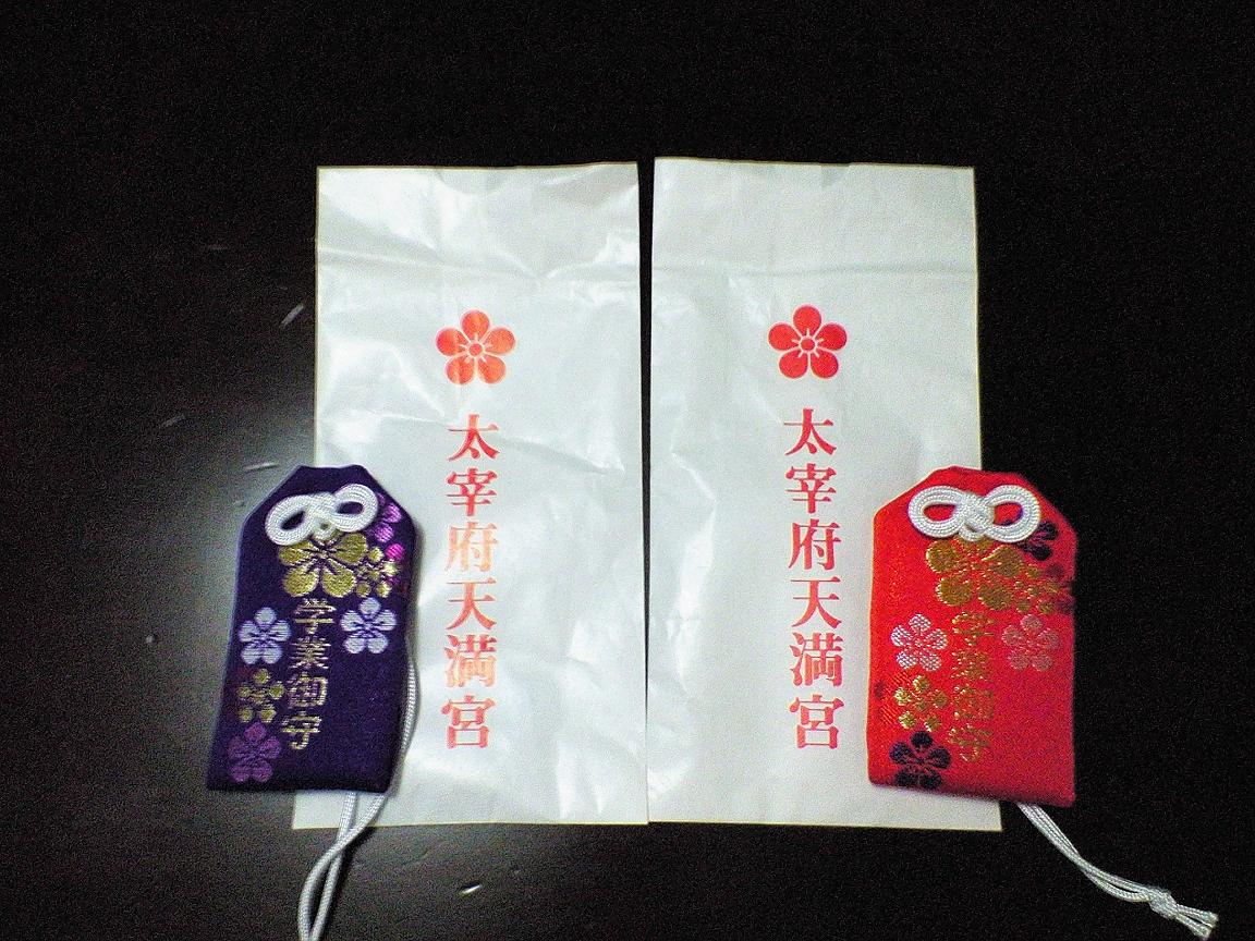 子供たちの叔母(私の妹)さんからお守りが届いた。。 学業の神様。。太宰府天満宮へ初詣の時に買って送ってくれたのだ。。 数少ない親戚からの温かい気遣いに感謝しつつ明日の入試に臨め!!息子!!